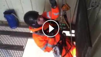 IRATA Level 2 training (rescuing past a deviation in rope access)